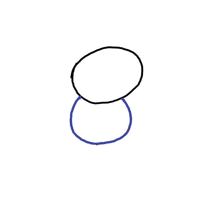第一步:画一个像鸡蛋的形状,这将形成小狗丹尼的头部。