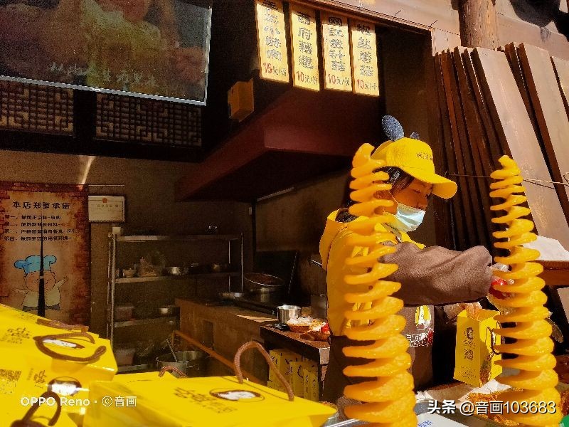 随性的逛了一圈,路过忐忑姐炸品店,看着买的人好多,便停下脚步买了两袋椒盐蘑菇的,一袋10元,两袋20元,带回去给老屋留一袋,妻子女儿留一袋。有四种口味和两种价位,这种炸品还是个网红店,人气很旺的样子,我第一次在网红店购物,感觉也没什么特别的。