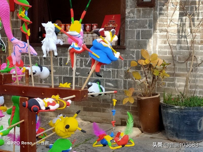 来到里面,路过一个制作面人的小摊位,做好的面人摆放在架子上等待顾客前来购买。如同一件件精美的艺术品,让人觉得赏心悦目。
