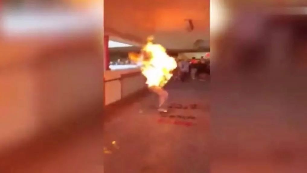 11月11日下午,在香港马鞍山地区一座天桥上,一群暴徒因不满一名57岁市民反对他们的破坏活动而与其发生口角。在对该市民进行殴打之后,暴徒向其浇淋易燃液体并点火焚烧,导致该市民瞬间成为“火人”,全身大面积严重烧伤,生命危殆。
