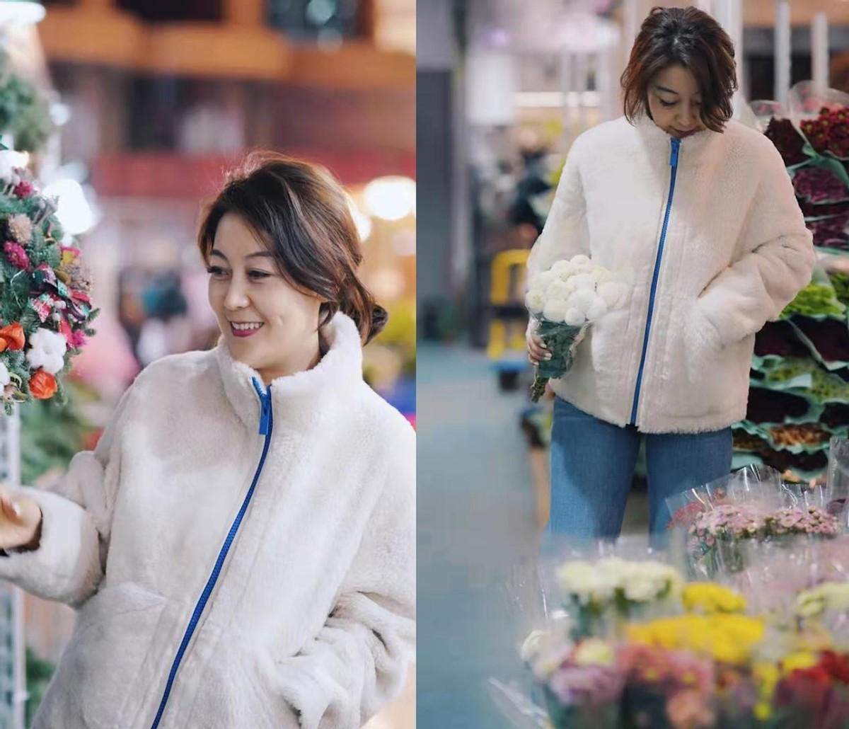 运用摇粒绒外套与牛仔裤进行匹配,可以使穿搭增添减龄感,减少冬季的“闷”,使女性看上去更年轻靓丽。