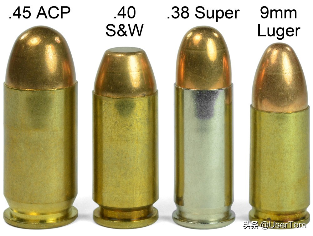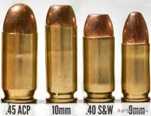 经典的.45ACP口径(11.43mm手枪弹)和9×19mm手枪弹相关资料很多,我不再详细介绍。只简单介绍一下.38 Super和10mm AUTO这两种不大常见的口径: