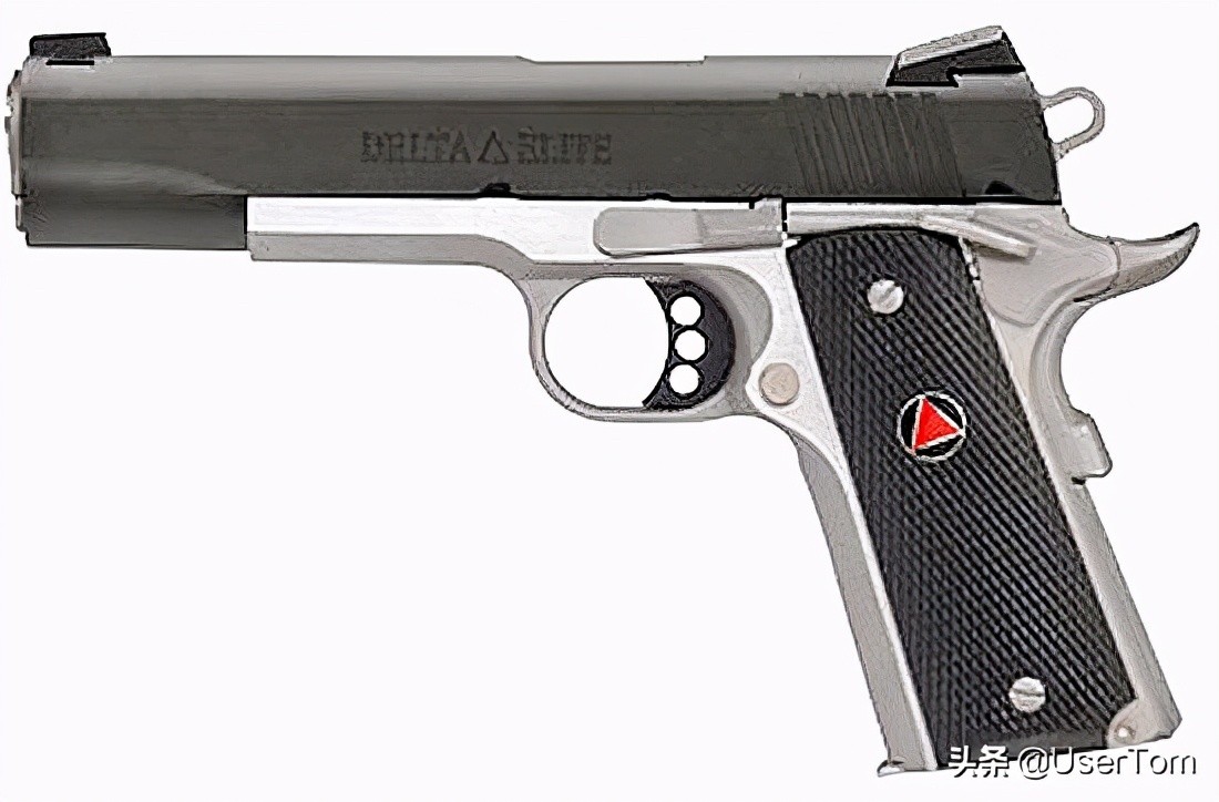 下面是“三角洲精英”型号,是典型的的10mmAUTO口径的1911手枪,也是我最喜欢的型号,明显特征就是握把护片中间黑色圆形中的红色三角形: