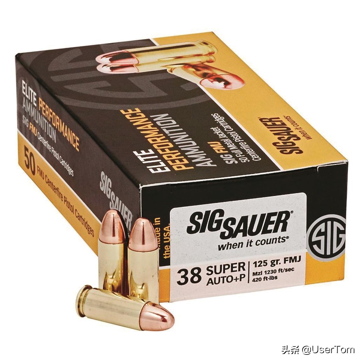 举两种产品为例:西格绍尔同一个系列的产品,弹头重量相差无几,都是全披甲弹头,.38 Super动能为420英尺磅(约570焦耳),而9×19mm动能只有374英尺磅(约507焦耳):
