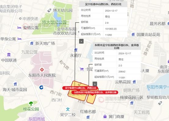 最终两宗地块均由东阳市城投底价竞得,楼面价11561元/㎡、11260元/㎡。
