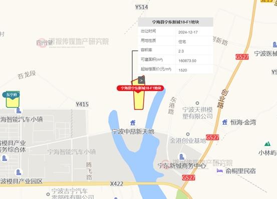 今日除慈溪成交地块外,宁海也成交了一宗宅地。