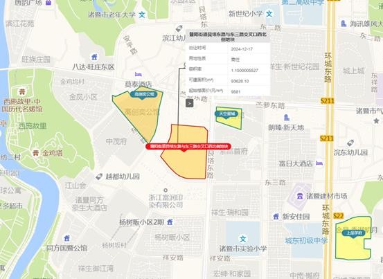 周边近期成交一宗宅地,由诸暨市浣江旅游开发底价竞得,楼面价10500元/㎡。