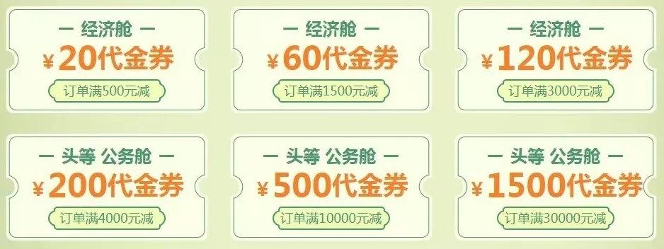 国航会员日的日期非常好记,“1月1日、2月2日,以此类推”就对了。国航一般会放出不同面额的机票优惠券,大家在买票前记得先领券,直接减去机票价格哦。除了优惠券,国航偶尔也会把活动主题换成国内机票立减,根据不同折扣的机票,给出会员日专属折上折,也是十分优惠。