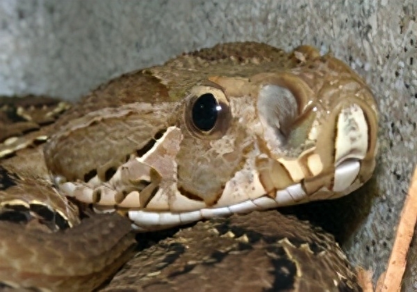 泰国圆斑蝰还有一个重要的特征,那就是它的大鼻孔,当你仔细观察时你会发现,泰国圆斑蝰的面庞上有着两个大鼻孔,这是其他蛇类没有的特征,当然并不建议就近观察。