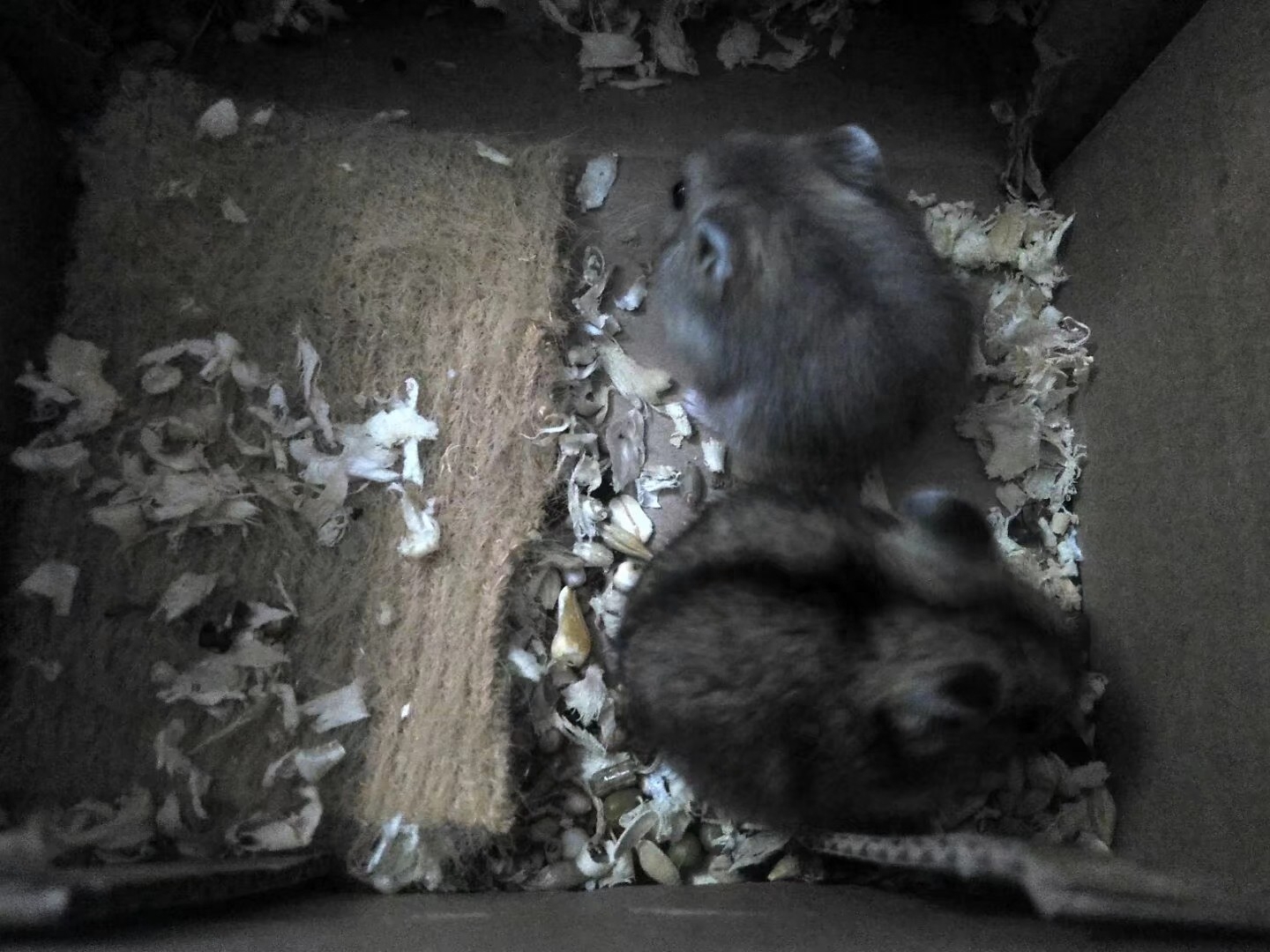 (18)小窝,选择较有深度的容器,避免鼠宝宝溜出来逛大街。选择透视度佳的容器,能方便偷看。不过有的母鼠会另觅筑巢的地方。