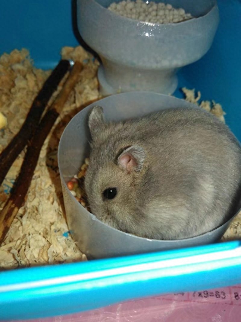 这个是养了很久的小仓鼠,肥肥胖胖的哒~