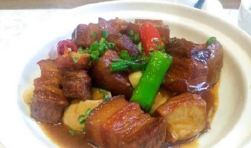 毛氏红烧肉,肥而不腻,肉质鲜美,跟江浙一带的红烧肉还是有区别的,少了些甜味更多的则是融入的湘菜的辣味,青椒鱼,一端上来就闻到一股浓浓的藤椒味鱼肉非常的薄,吃到口里也非常的嫩,打底的是莴笋片。刚开始吃只感觉鲜辣冲鼻,吃到后面才发现整个鼻腔都被辣到发呛。如果不太能吃辣的人建议还是少吃这道菜。千叶小炒肉,将青椒换成了千叶豆腐,起到减缓麻辣的效果,最后就是他们家备受好评的芋头青菜钵,是将芋头熬煮成羹和青菜煮汤,入口丝滑绵软青菜清香,有效舒缓一下麻痹的味觉。