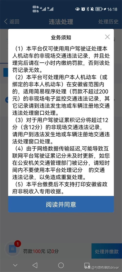 交管12123APP网上自助处理交通违法(违章)流程步骤分享