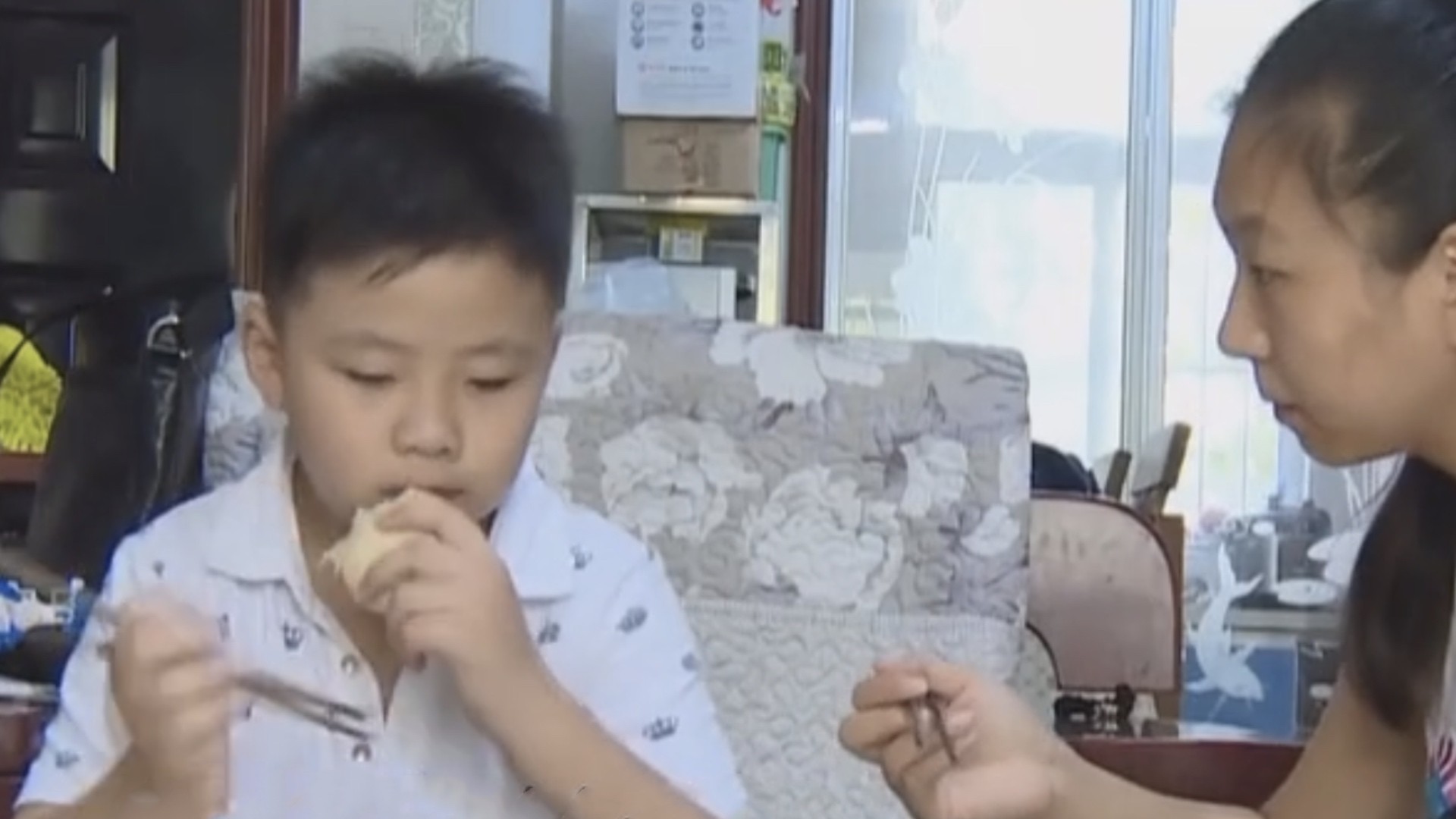 他在玻璃窗外看着爸爸吃下整整一碗才肯走,