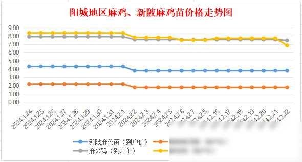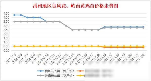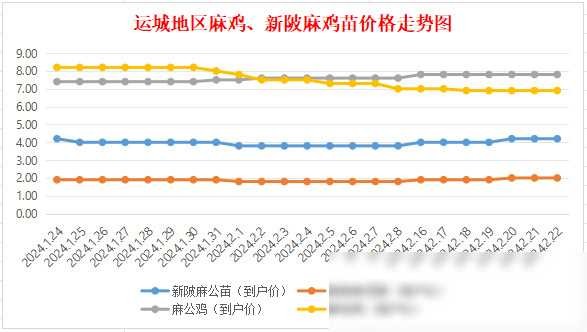 而西北地区、广州地区的麻鸡苗市场也受到了麻鸡成鸡价格下滑的影响。土二公苗、黄花公苗的价格纷纷下跌,市场上的不确定因素似乎越来越多。河南地区的驻马店地区、禹州地区则相对平稳,良凤花鸡苗、岭南黄鸡苗的价格保持着稳定,仿佛是市场中的一抹清流。