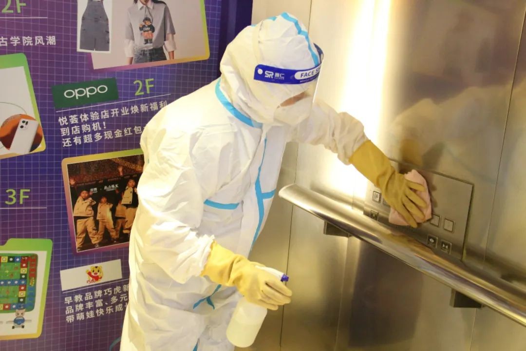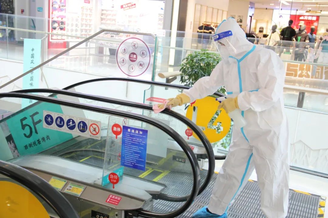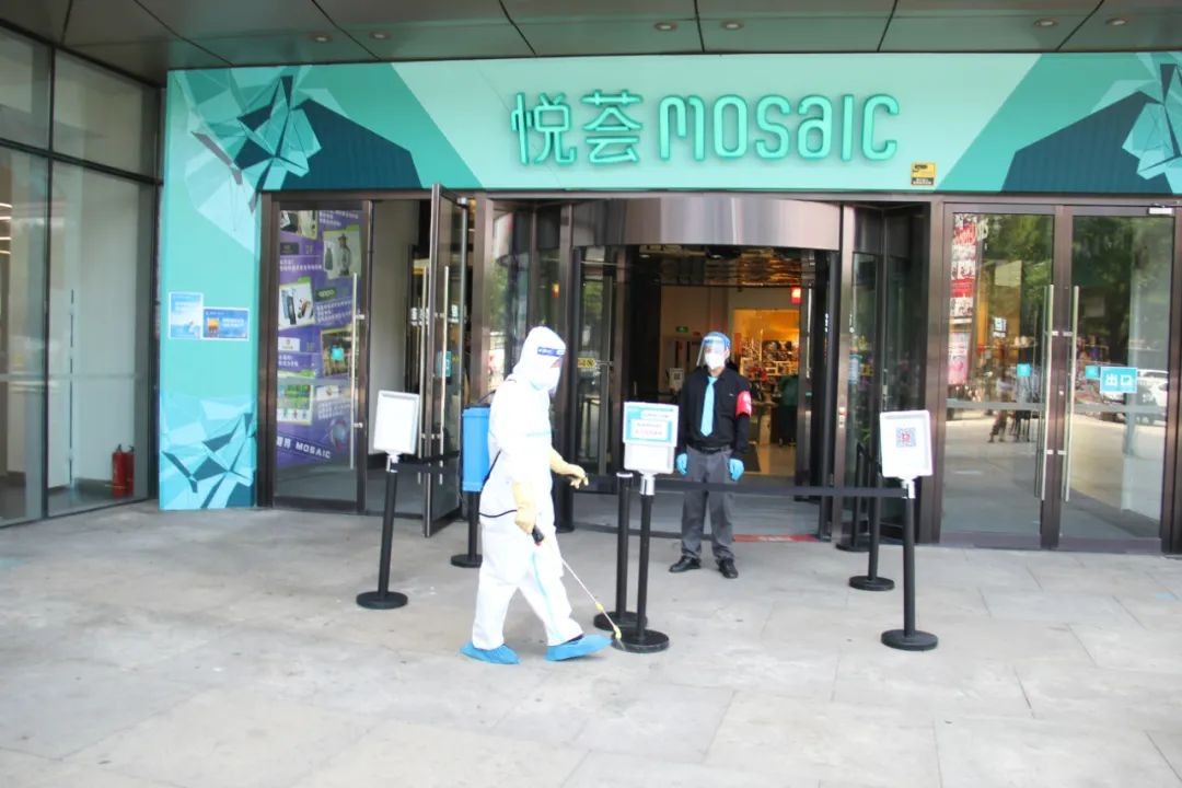 自营业至今,严格落实疫情防疫举措,筑牢安全防线。6月14日,北京悦荟广场再次进行全场消杀工作,为消费者提供安全无忧的购物环境。