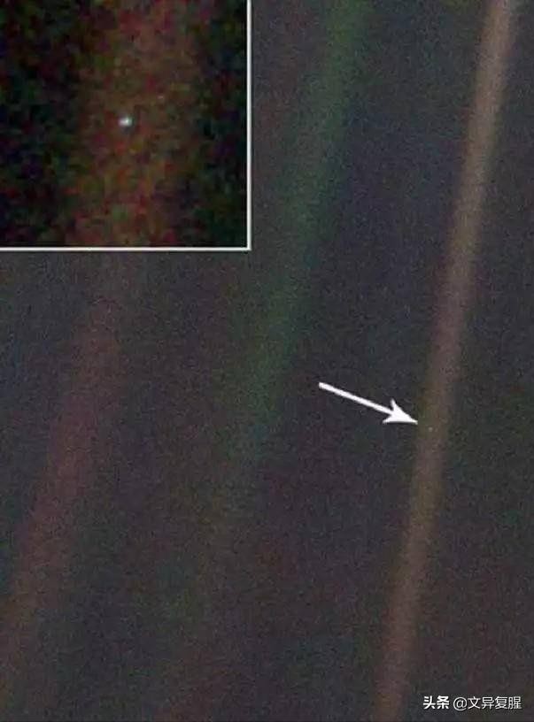 1990年,旅行者1号于距地球64亿公里处最后一次回望母星,拍摄下这张照片。