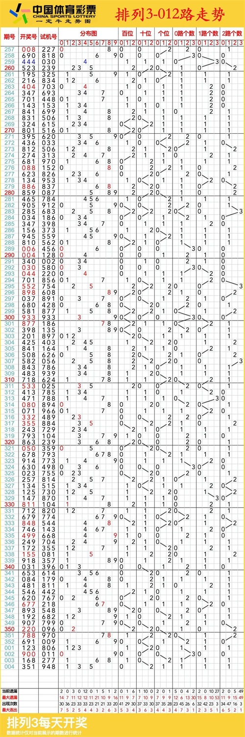 排列三走势图,01月05日体彩排列3连线近100期走势图