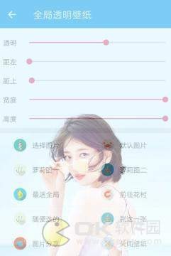 2、从手机本地相册选择好要设置的透明壁纸后,大家还可以通过进度条设置透明度,方向、宽度、高度等状态。