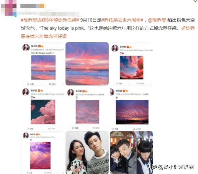 其实早在参加悼念之前,陈乔恩就通过社交平台更新动态,晒出了一张粉色的天空照片,因为乔任梁生前最喜欢的颜色就是粉色,所以她以此思念好友,也不难看出她的上心程度。