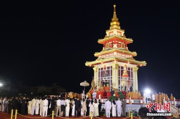图为皇家田广场供奉佛牙舍利的佛塔。中新社记者 李映民 摄
