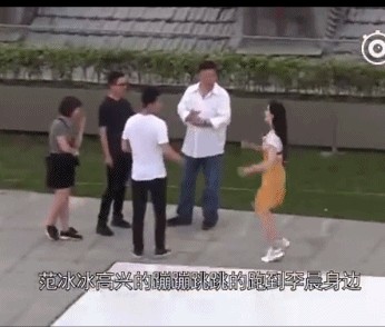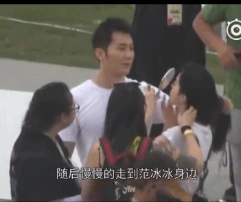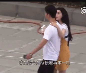 范冰冰拍摄完后一蹦一跳地跑到了李晨的身边,给了李晨一个大大的撒娇式拥抱