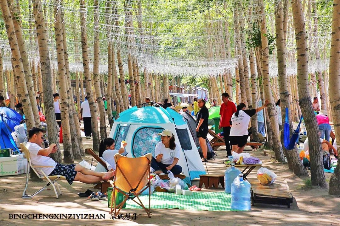 嘎日迪依林傍水,我们到的时间是上午刚开园,穿过由名贵中草药汇成的“丹凤朝阳”图案的花海,便见一群群的亲朋好友来到湖畔的林间安营扎寨,享受假日时光。