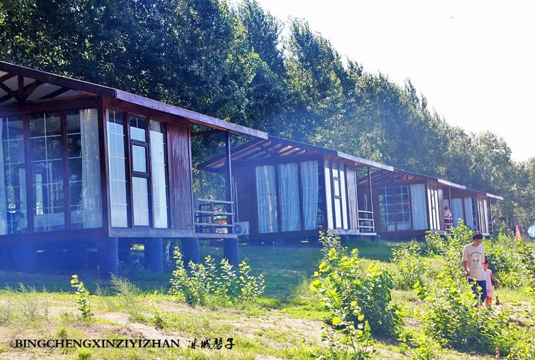 岸上绿树如荫、曲径通幽,玩累了可到蒙古毡房和帐篷小憩。最喜欢的是靠岸树荫间的小木屋,据说抢手得很,想想躺在木屋的床看着波光湖水,枕着碧湖入睡,一定有很美的梦境。