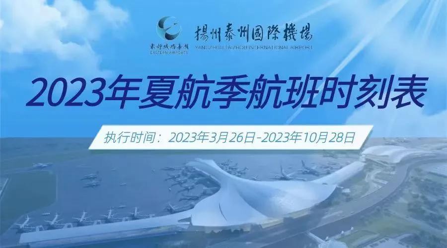3月26日,民航将迎来2023年夏航季。今天下午,扬州泰州国际机场2023年夏航季航线推介会举行,并发布了2023年夏航季航班时刻表。据悉,2023年夏航季执行时间为2023年3月26日至2023年10月28日。
