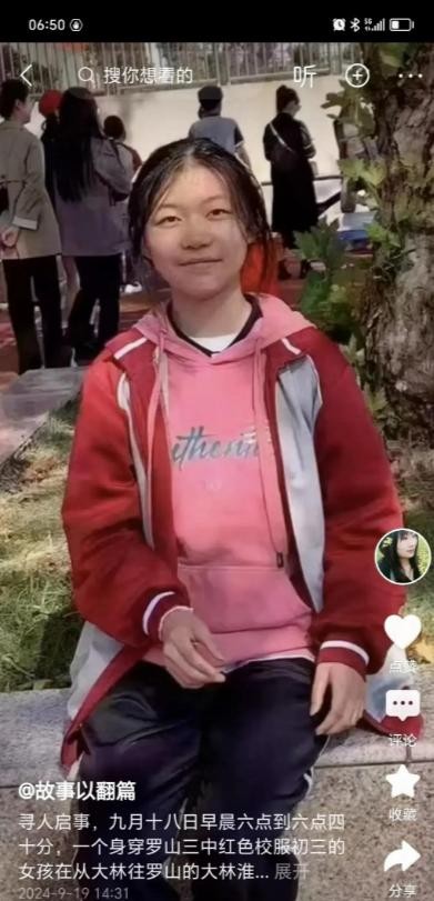 这个消息在9月18日晚上由网友发布后,很多人都很关心这个女孩的安全,希望她能尽快平安找到。
