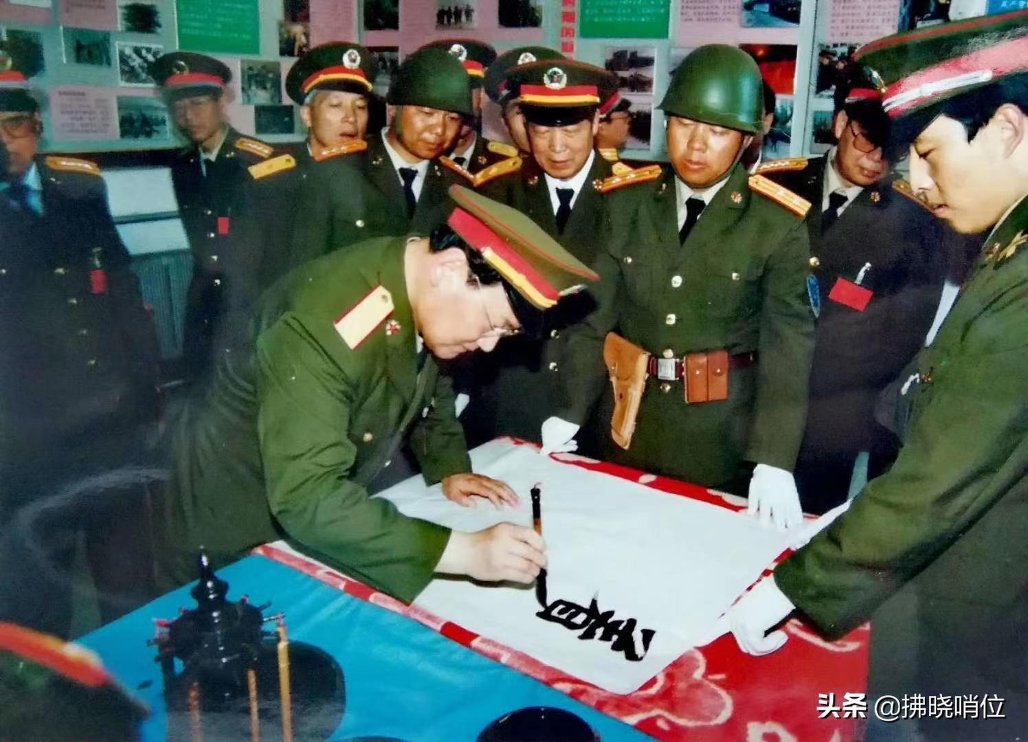 任兰州军区司令员视察特种大队时题词,戴头盔者为特种大队首任大队长尹武平和首任政委姬文战