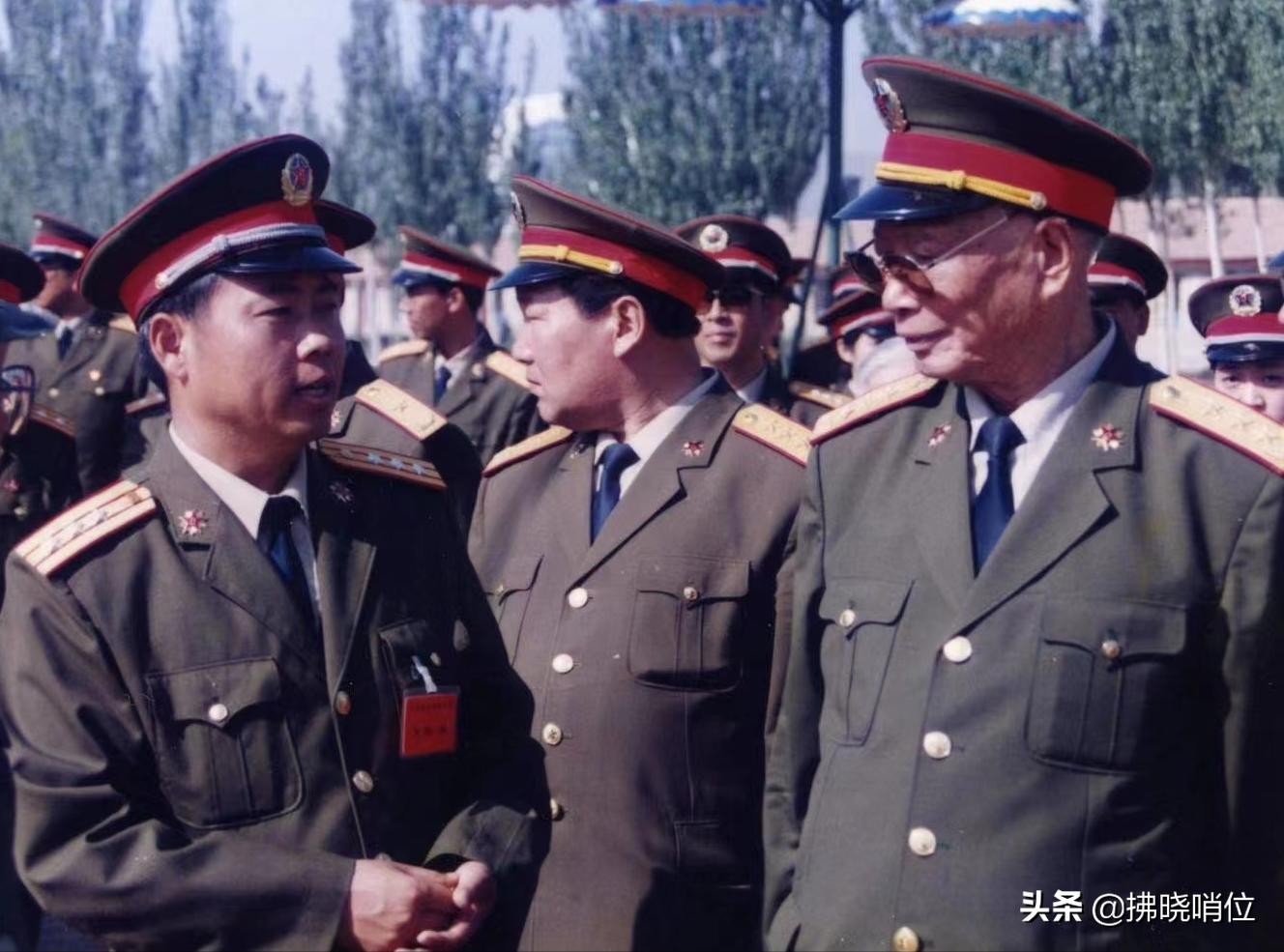 刘司令员陪同张震副主席视察特种大队,左为大队长尹武平