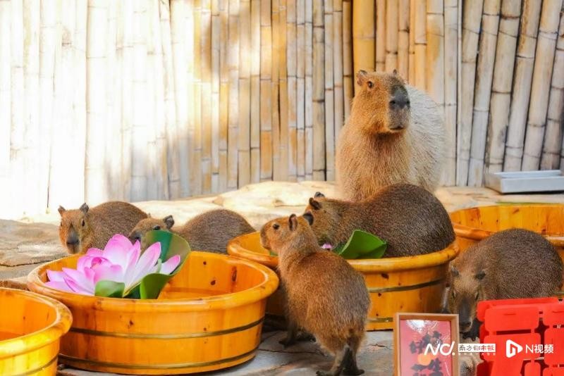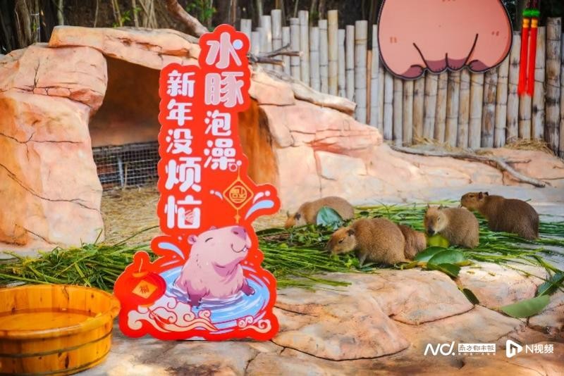 日前,长隆海洋王国水豚五胞胎幼崽首次和游客们见面,并送上新年祝福。