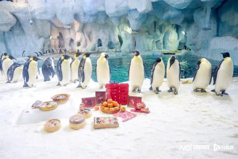 不仅如此,专属海洋动物的特色“团年饭”也安排上了。在企鹅馆,企鹅大家族的成员们翘首以盼等待着新年大餐。小朋友亲手送上由保育员精心制作的团年饭,里面包含了南极磷虾和各类小鱼等企鹅爱吃的食材,美味可口、营养十足,更带有“年年有余”的美好祝福。此外,海豚、白鲸等海洋动物们也有自己的团年饭。