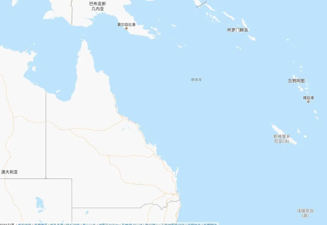 珊瑚海(Coral Sea)位于澳大利亚东北、新几内亚东南、所罗门群岛西南,面积约479万平方公里,世界上最大的珊瑚群——大堡礁就在珊瑚海。二战时期,美日在这里爆发的珊瑚海海战是中途岛海战的前哨战。