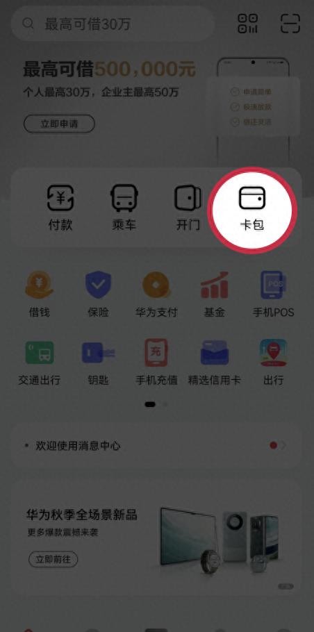 还可0元开卡。华为手机用户只需打开钱包APP,点击“卡包”即可申领。