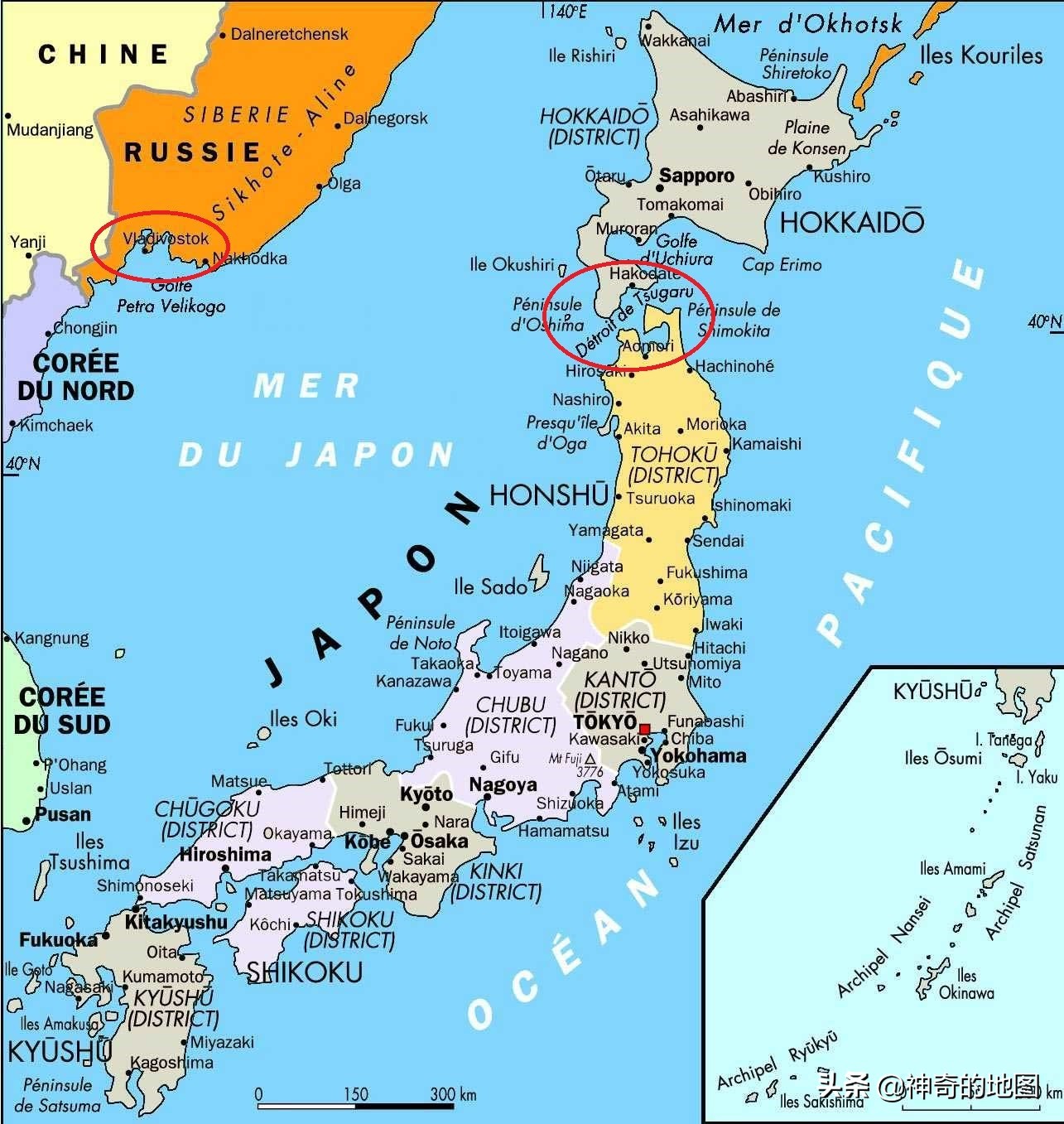 最后说说津轻海峡(Tsugaru Strait),这个海峡隔开了本州与北海道岛。西通日本海,东接太平洋,如果驻扎在符拉迪沃斯托克(海参崴)的苏联太平洋舰队要进入到太平洋,最近的路线就是穿过津轻海峡。换句话说,如果美国的舰队从夏威夷航行到符拉迪沃斯托克(海参崴),最便捷的航道也是穿过津轻海峡。但海峡的宽度只有24-40千米,换算成海里的话就是10.8-21.6海里,如果按照日本公布的领海宽度12海里,这里就是日本的内海。但最后在美国的压力下,日本领海法规定该海峡为特定海域,使用特别领海宽度3海里,中部的国际航道,各国的船只都可以无害通行。2017年,中国海军第一次有军舰穿越了津轻海峡,这也是一个新时代的开始~