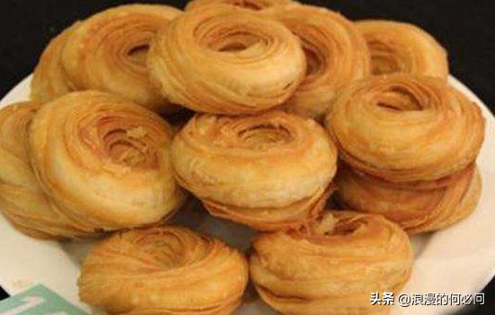 它是用上好的白面、白糖、香油、青红丝、核桃仁等材料做的点心,这种点心的外皮有数道花酥层层叠起,金丝条条分明,中间如急流旋涡状,因用油煎炸,色泽金黄,香味扑鼻。