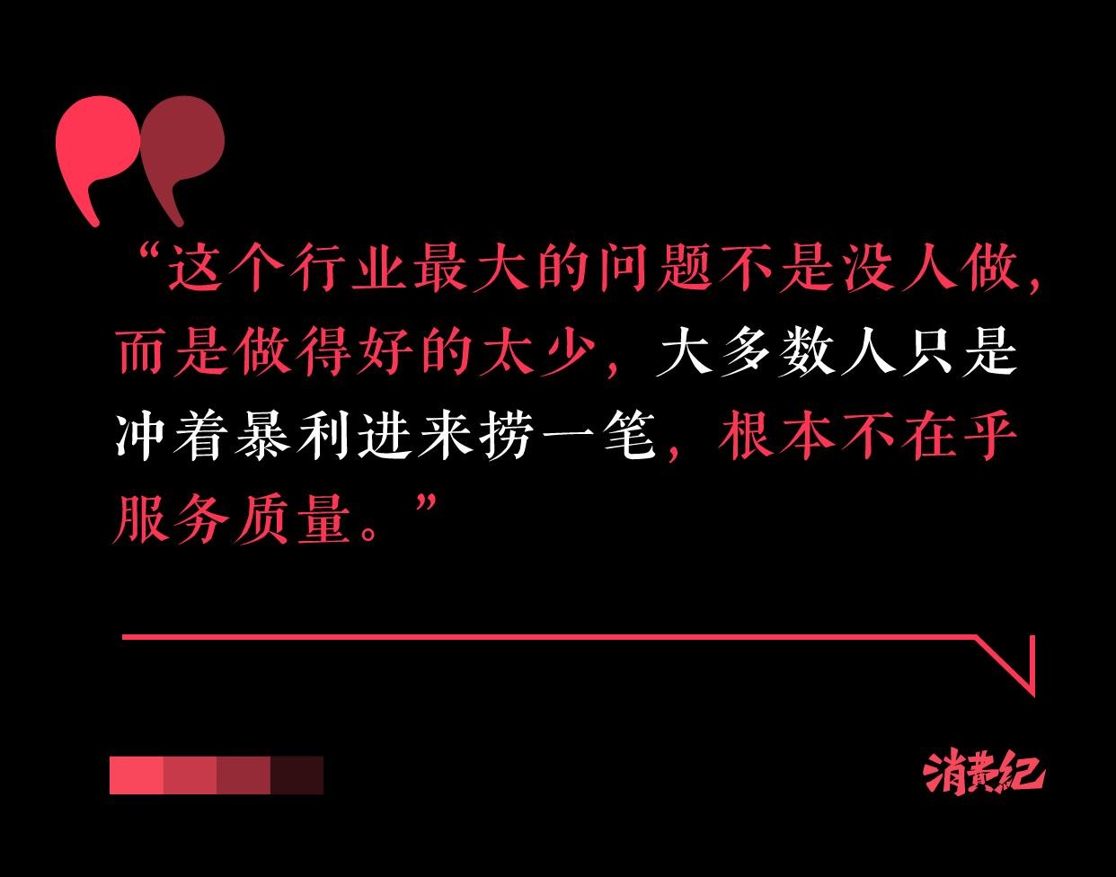 纠纷,则是暴利与冷门交织下的必然结果。对此,Lily坦言:“这个行业最大的问题不是没人做,而是做得好的太少,大多数人只是冲着暴利进来捞一笔,根本不在乎服务质量。”