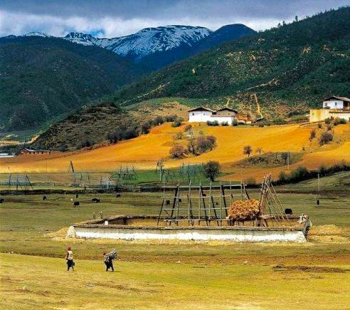 扎尕那的秋天比夏天更有韵味,山更显白,天更显蓝,树是五彩,小溪更清澈……缱绻在群山层林、夕阳西下中的扎尕那,小麦和青稞交织而成的梯田,郁郁葱葱的云杉和冷杉布满峡谷和坡地,树树皆秋色,山山落余晖。清净悠然,仿若仙境。