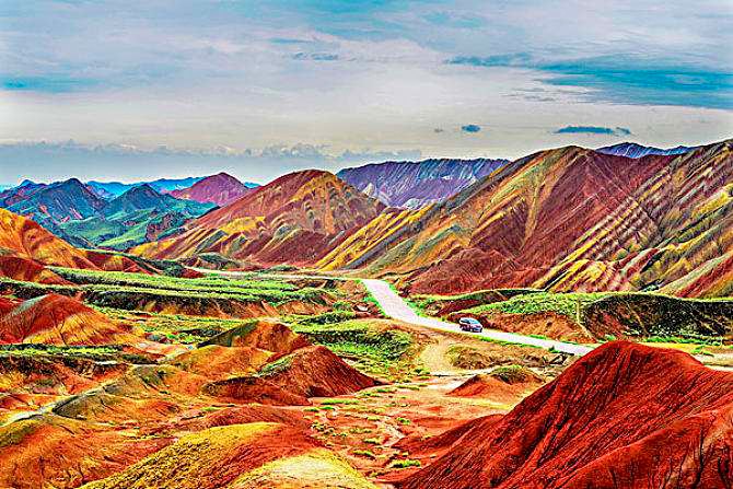 一说张掖,人们立马想到的是七彩丹霞,其实在丹霞地貌的山山沟沟,生长着大片大片的金黄白杨、橙红红柳、黛绿冷杉,它们与七彩的丹霞地貌混在一起,在秋日午后的阳光照射下光彩夺目,熠熠生辉。