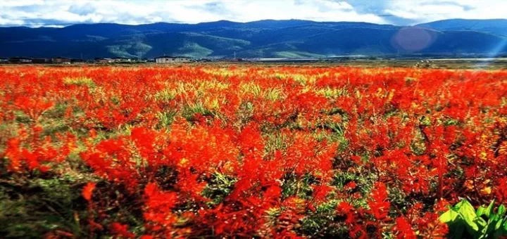 香格里拉的秋天,雨季过了,叶子开始黄了、红了……蓝天白云,大地一片五彩斑斓,这里的秋色好似不惹凡尘的女子,遗世独立。尤其是草原上缀满的火红花海,它们红得那么惊心动魄,红得如此热烈赤诚。