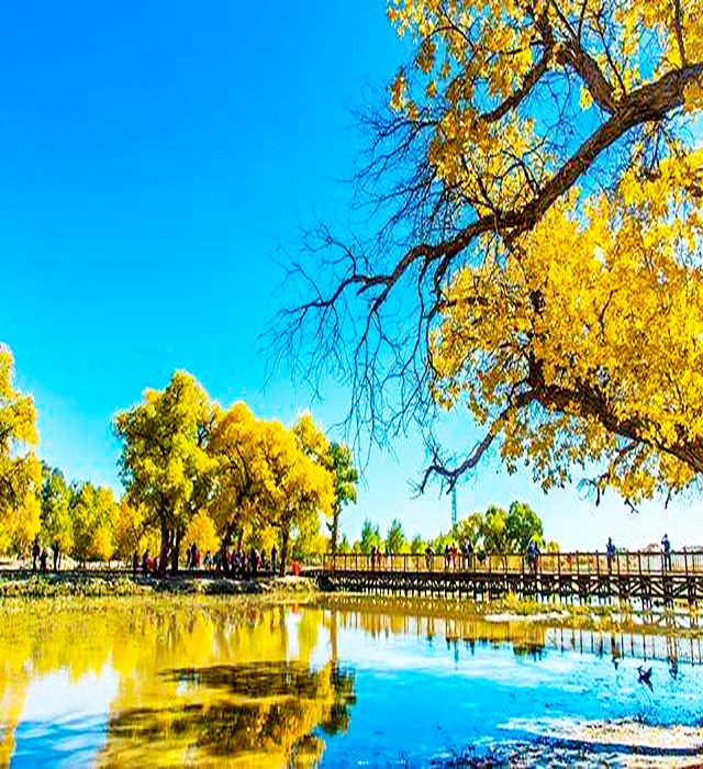 秋天,一定要去看一次金黄的胡杨林。大片大片金色的胡杨林是独属于这片土地的璀璨,随手一拍就是醉人的美景。感受胡杨“千年不倒,倒了千年不死”意蕴精神。秋天是属于它们的节日,退去疲惫的外衣,穿上金黄的礼服,将最美的自己呈现给这个世界