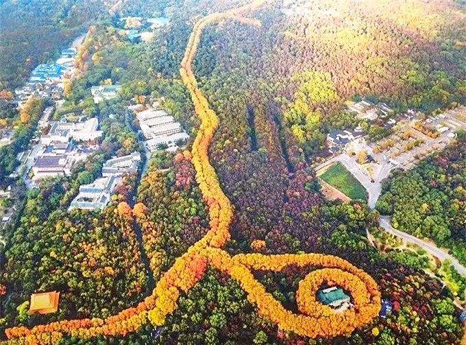 随着秋季的到来,美龄宫周围环形路上的梧桐树叶开始变黄,配合着顶覆绿色琉璃瓦的美龄宫,从高空俯瞰犹如一串镶有绿宝石挂坠的珍珠项链,美不胜收。