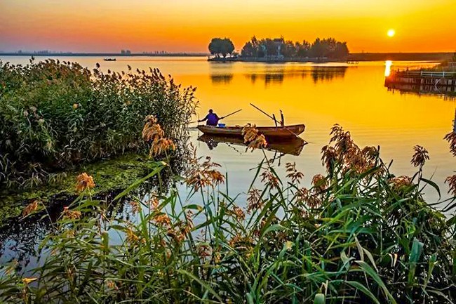 白洋淀素有“华北明珠”的美誉。“春去苇叶青,秋来芦花白”。秋天的白洋淀百里苇海一片金黄,夕阳西照,坐上小船,轻划双浆,悠悠然穿梭在芦花丛中,静享北方水乡的温柔,抛却车水马龙的城市喧嚣。