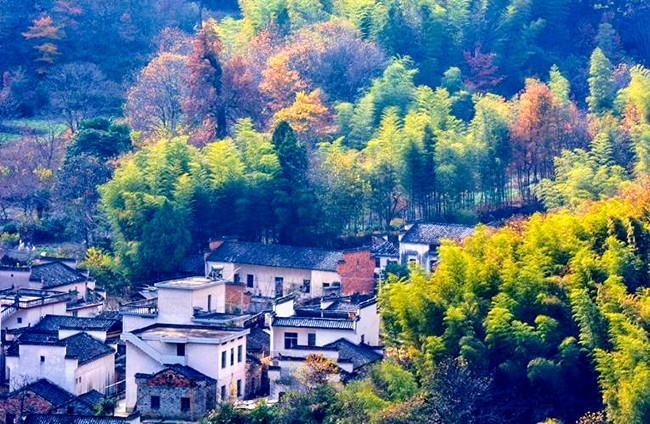 “村在林中、林在村中”的特殊位置,一到秋天,满目的金黄将村落掩盖住,让整个村庄都笼罩在秋的静谧中,让一切都变得诗意十足。