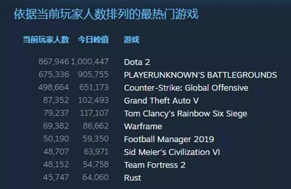 3月初,《DOTA2》的在线玩家峰值突破了100万,位列Steam热门游戏榜榜首。要知道,整个2018年,《DOTA2》的月平均玩家数量只有45万左右,上一次峰值破百万还要追溯到两年前。