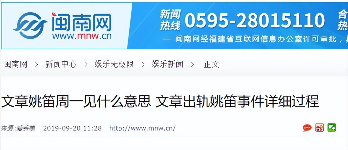 《文章姚笛周一见什么意思 文章出轨姚笛事件详细过程》——闽南网