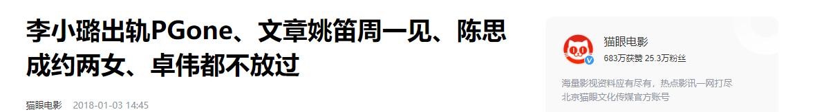 《李小璐出轨PGone、文章姚笛周一见、陈思成约两女、卓伟都不放过》——猫眼电影