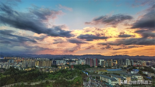 恩施土司城和体育中心的晚霞